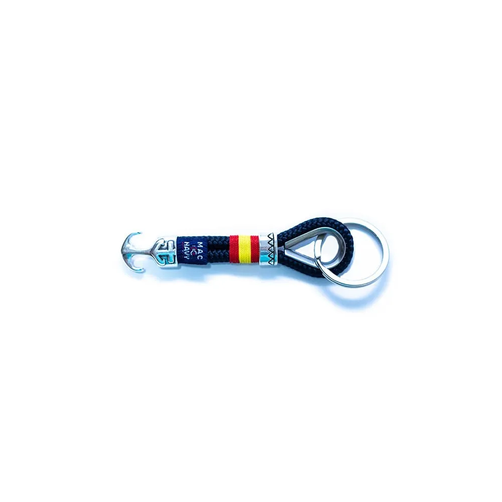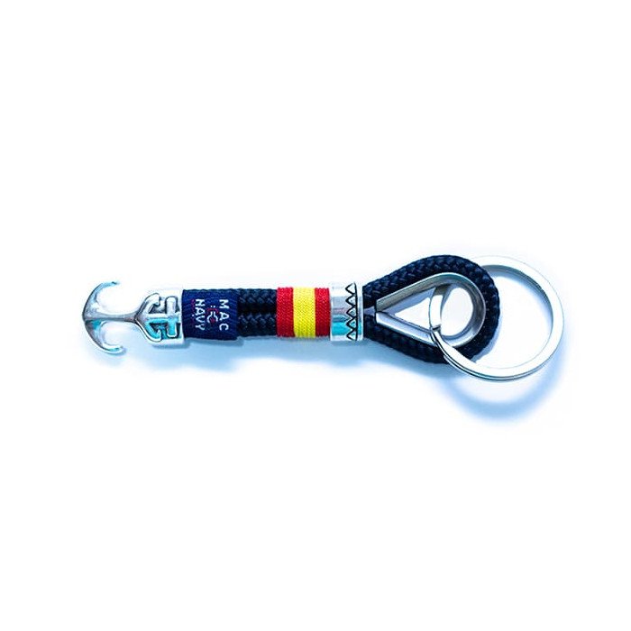 Este llavero náutico con ancla de Mac Navy es un complemento elegante y con carácter marinero. Fabricado con cuerda náutica y decorado con la bandera de España, su diseño simboliza aventura, tradición y estilo. Ideal como regalo o para llevar siempre un pedazo del mar contigo