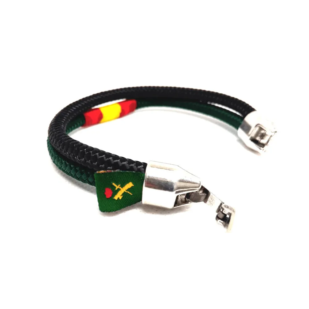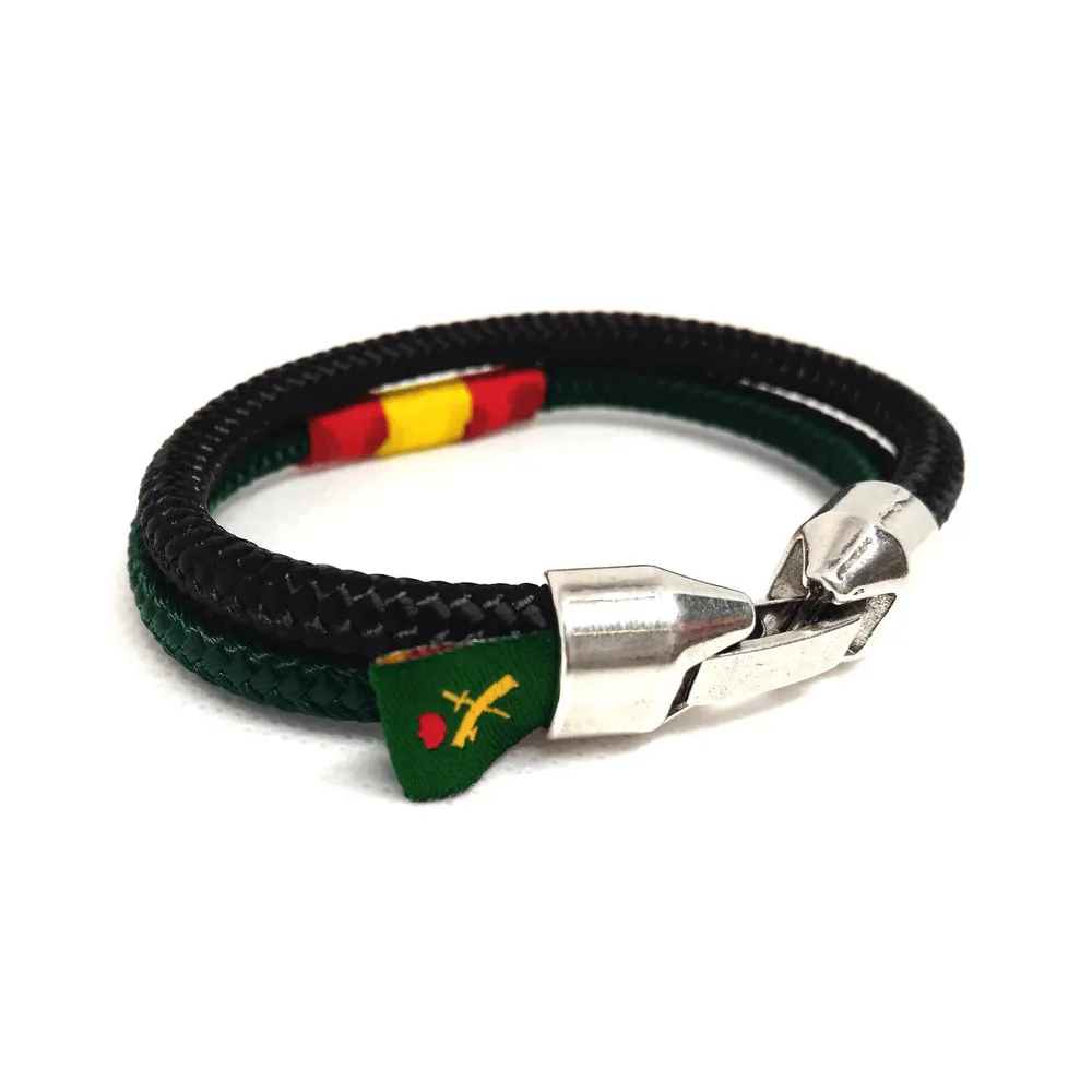 Celebra el honor y la vocación de servicio con esta pulsera oficial de la Guardia Civil – ARGC. Su diseño en doble cuerda verde institucional simboliza la firmeza, el compromiso y la tradición del cuerpo, acompañado por una franja central con los colores de la bandera de España como sello de identidad nacional.