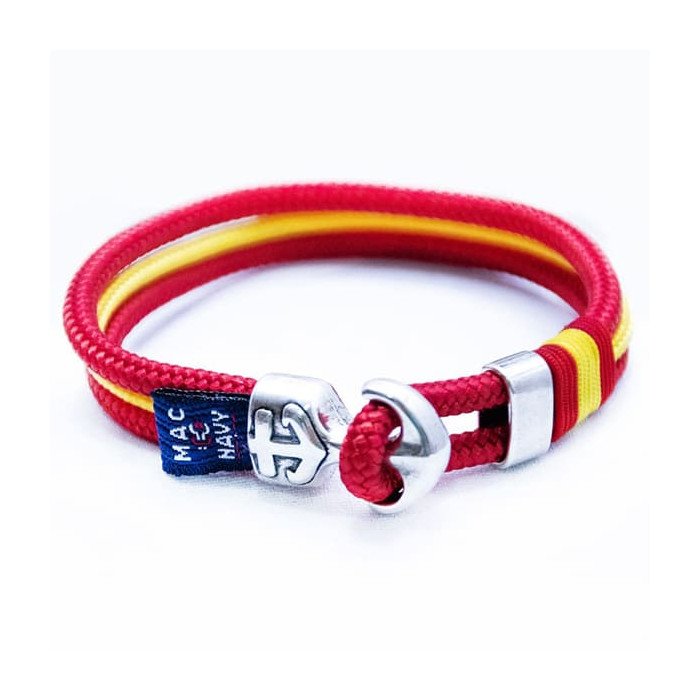 Su diseño cuenta con un cierre metálico exclusivo en forma de ancla, grabado con precisión para ofrecer seguridad y personalidad. El contraste entre el rojo y el amarillo en doble vuelta, junto con el emblema de Mac Navy, convierte esta pulsera en un accesorio con carácter, tradición y fuerza.