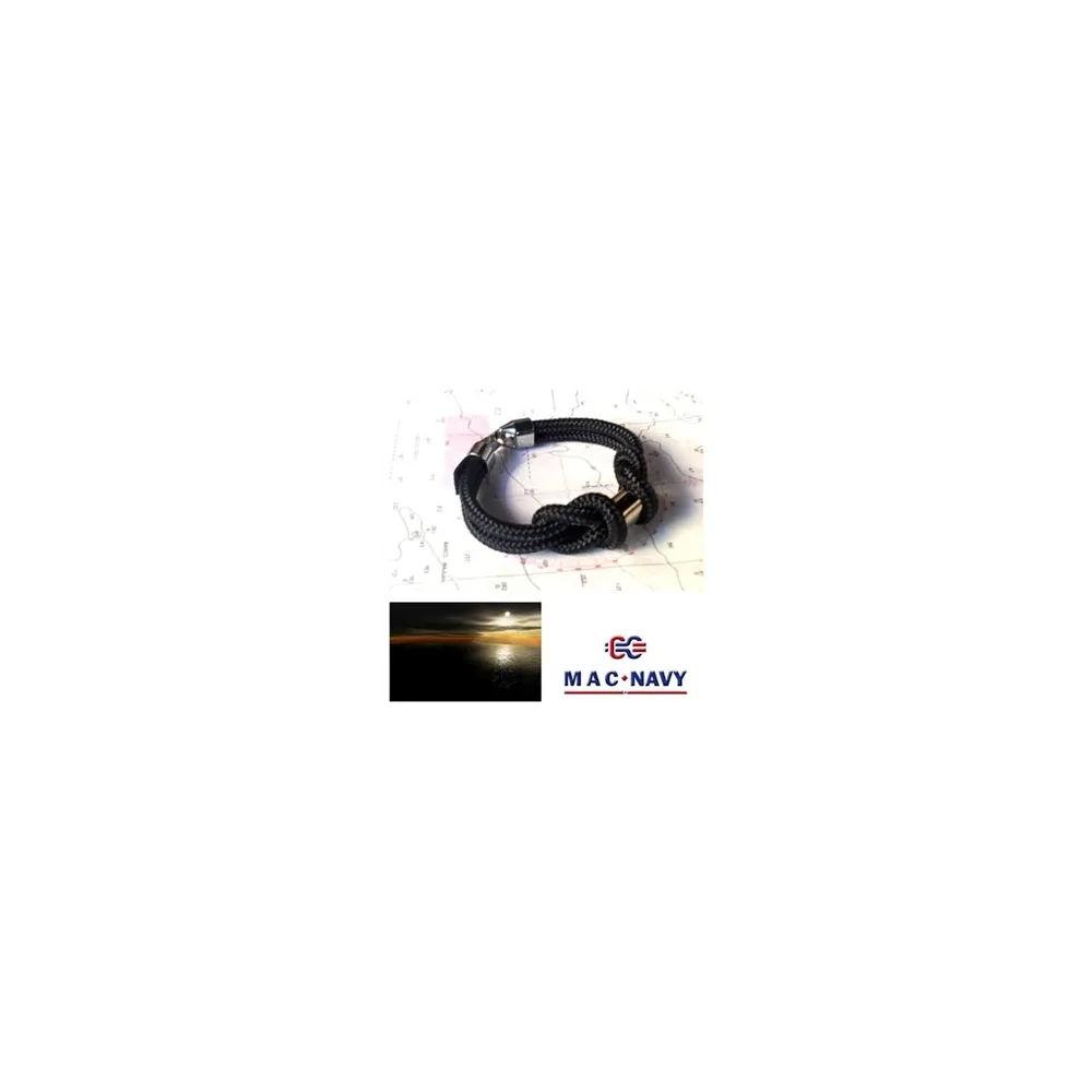La pulsera Driza Negra encarna la elegancia discreta y la fortaleza del mar. Su diseño sobrio, elaborado con cuerda náutica de color negro intenso, destaca por su nudo marinero central: un símbolo de unión y resistencia que remite a las tradiciones navales.
